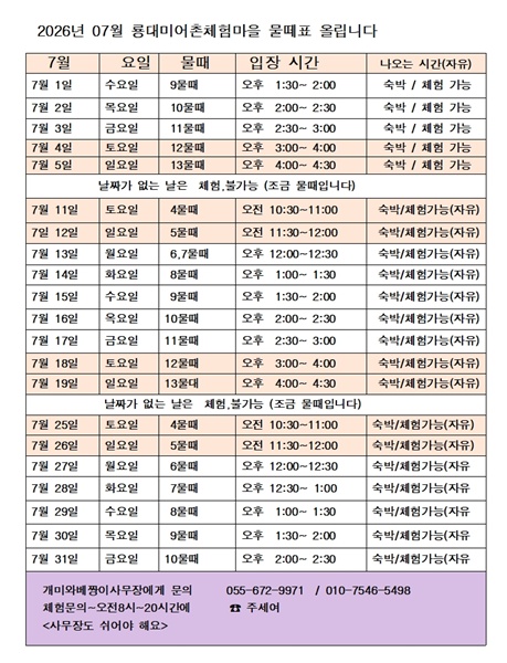 2026년 07월 물때표 올립니다.