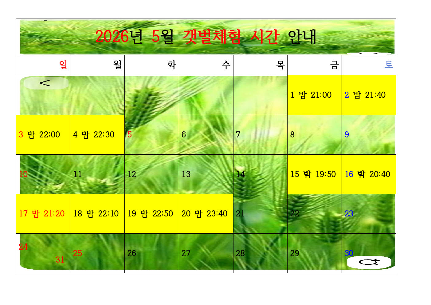 2026년 5월 체험가능 시간